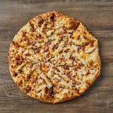 Ranch Base, Mozzarella/Provolone Cheese Blend, Chicken, Bacon, Cheddar Cheese, Topped with a Ranch Drizzle